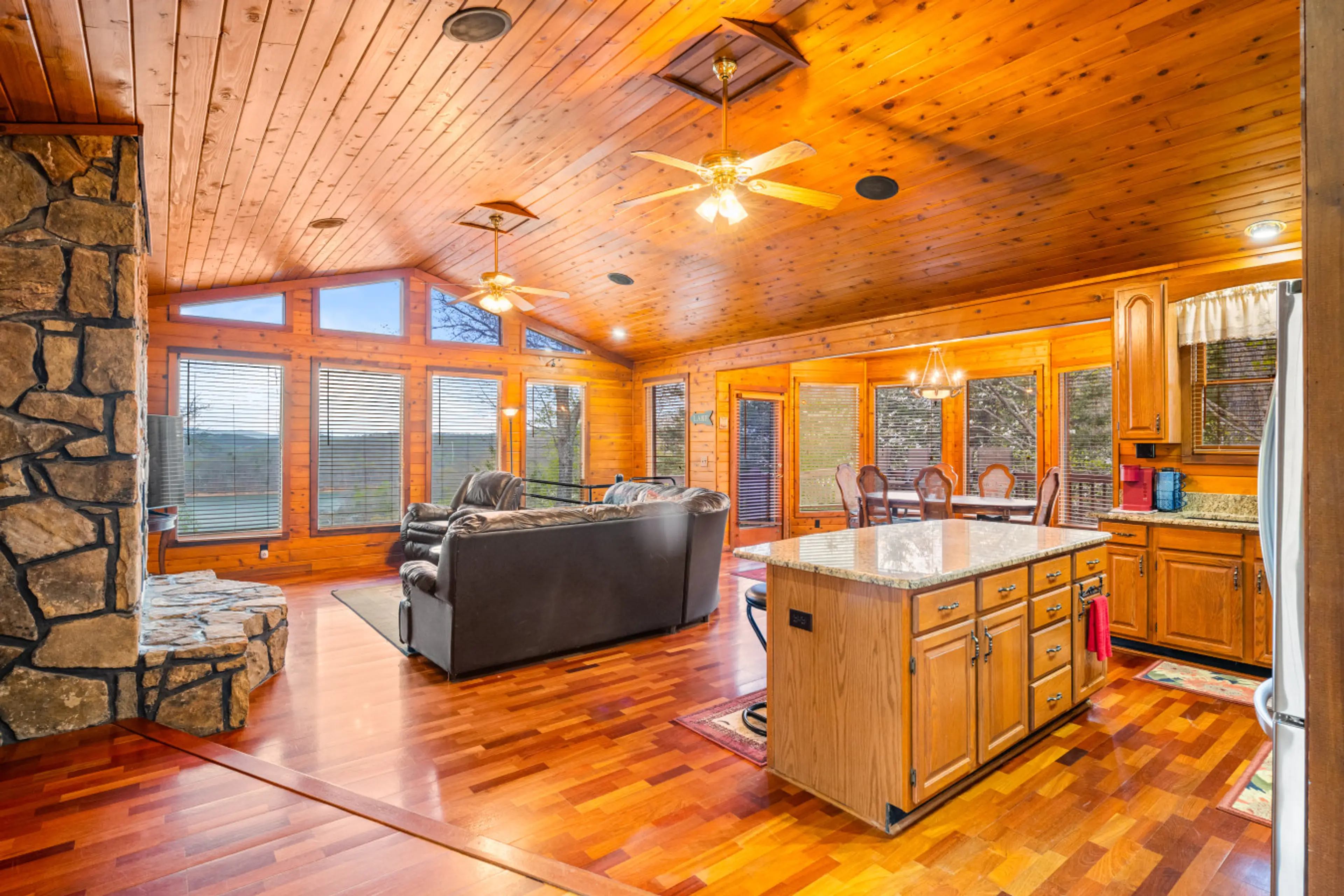 Sunset Ridge: Luxury Log Cabin | Private Wooded Seclusion Escape to Sunset Ridge, a stunning A-frame retreat where rustic charm meets modern luxury. Nestled on a private, fully fenced wooded lot, this home offers ultimate seclusion and breathtaking, west-facing views of Norris Lake. It is the perfe...